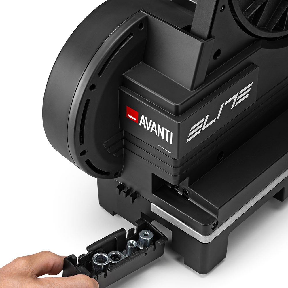 - Diseño y dimensiones: el Elite Avanti desplegado tiene unas dimensiones de 580 x 700 x 520 mm, mientras que plegado se reduce a 580 x 210 x 520 mm. Tiene un peso de 13 kg. Además trae un compartimento para guardar diferentes acoples para el eje de la bicicleta.